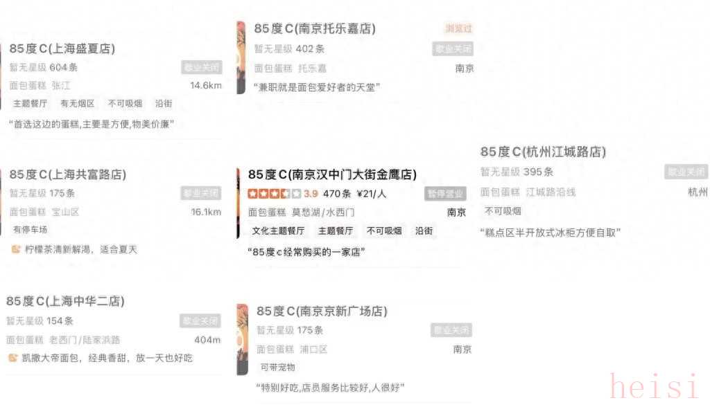 記者還注意到,大眾點(diǎn)評(píng)平臺(tái)上顯示,上海數(shù)家85度C顯示閉店。澎湃新聞?dòng)浾咧码姅?shù)家上海門店,工作人員均表示,有的是房租到期不續(xù)約了,儲(chǔ)值卡門店可以通用,其余信息則不清楚。