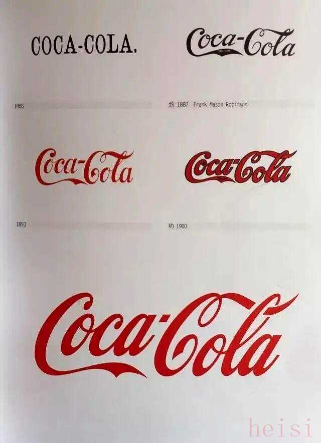 "進(jìn)化分析:" Coca-Cola的Logo經(jīng)歷了多次簡化,但始終保留了紅色