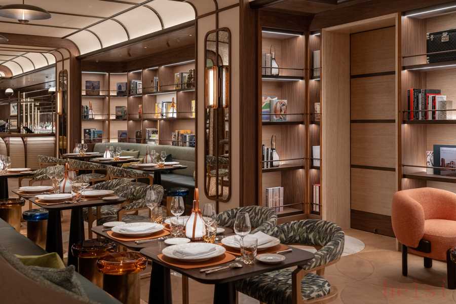 室外露臺為賓客營造出優(yōu)雅愜意的海濱格調(diào)。Le Café Louis Vuitton餐廳位于三層,設(shè)有吧臺和雅座,可供隨心小憩。精致的用餐區(qū)域巧妙融入遠(yuǎn)洋游輪元素,柔和的燈光令木質(zhì)表面更顯溫潤,書架上陳列品類豐富的精選書籍。隨著路易威登餐飲在全球不斷拓展其獨特的烹飪版圖,Le Café Louis Vuitton亦展現(xiàn)了“東西合璧”精髓,成就西方美學(xué)與中國文化的優(yōu)雅共鳴。菜單既包含路易威登的經(jīng)典菜肴,也不乏此全新的獨家本地特色。