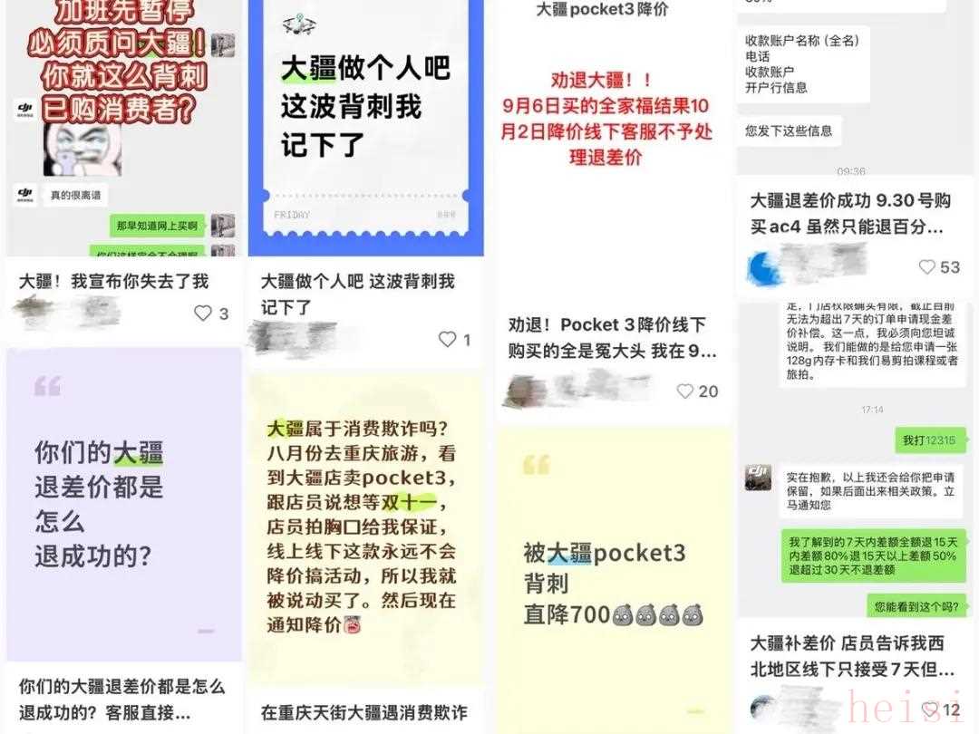 在小紅書上,像冰冰這樣的消費者還有很多。10月9日開始的這波降價,恰好讓許多在9月底為國慶出行而購機的用戶,錯過了“7天價保”的期限。“大疆把消費者當傻子”等話題在小紅書上發(fā)酵,引發(fā)熱議。