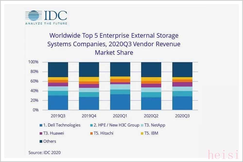 根據(jù)IDC數(shù)據(jù),2020年第三季度,即便在全球新冠疫情的不利因素影響之下,戴爾科技仍舊是全球最大的外部企業(yè)存儲(chǔ)系統(tǒng)供應(yīng)商,市場(chǎng)份額高達(dá)28.8%,第二名HPE/新華三的市場(chǎng)份額僅為10.8%。