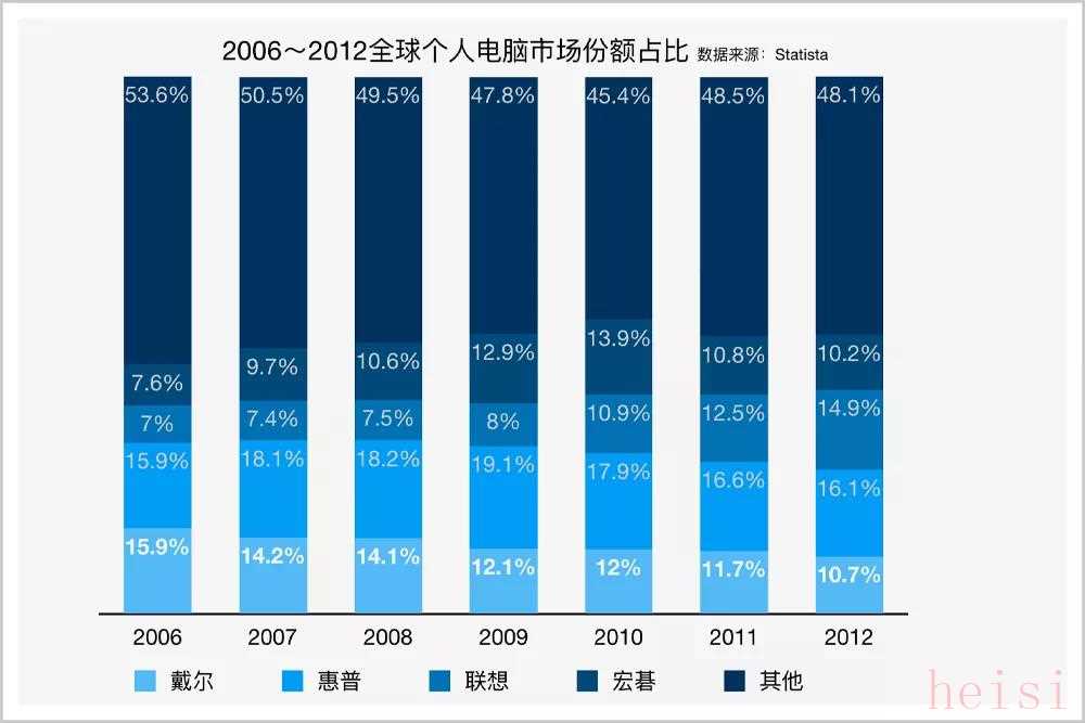 ▲2006-2012全球個(gè)人電腦市場(chǎng)份額占比 來(lái)源:Statista