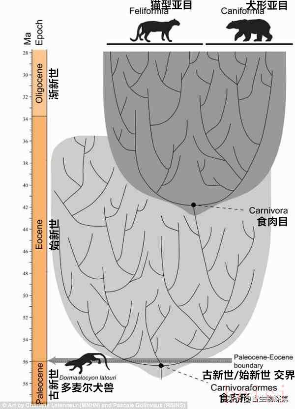 不過,時(shí)間點(diǎn)需要稍微精確一點(diǎn)。根據(jù)目前的遺傳學(xué)證據(jù),貓(Felidae科)和狗(Canidae科)大約在 "2500萬到3000萬年前" 分化出來,從同一個(gè)更古老的哺乳動(dòng)物譜系中獨(dú)立進(jìn)化。