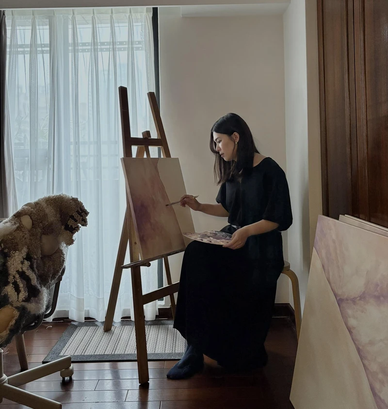 玫從一開始用織品、攝影到開始畫自己的傷痕。顏色從黑白,漸漸加入了媽媽喜歡的紫色,有如出生肌膚的膚粉色,在創(chuàng)作期間他也發(fā)現(xiàn)自己的內(nèi)心漸漸變了,而眼里的疤痕也變成了不同的樣子,像是山的稜線,或是珊瑚: