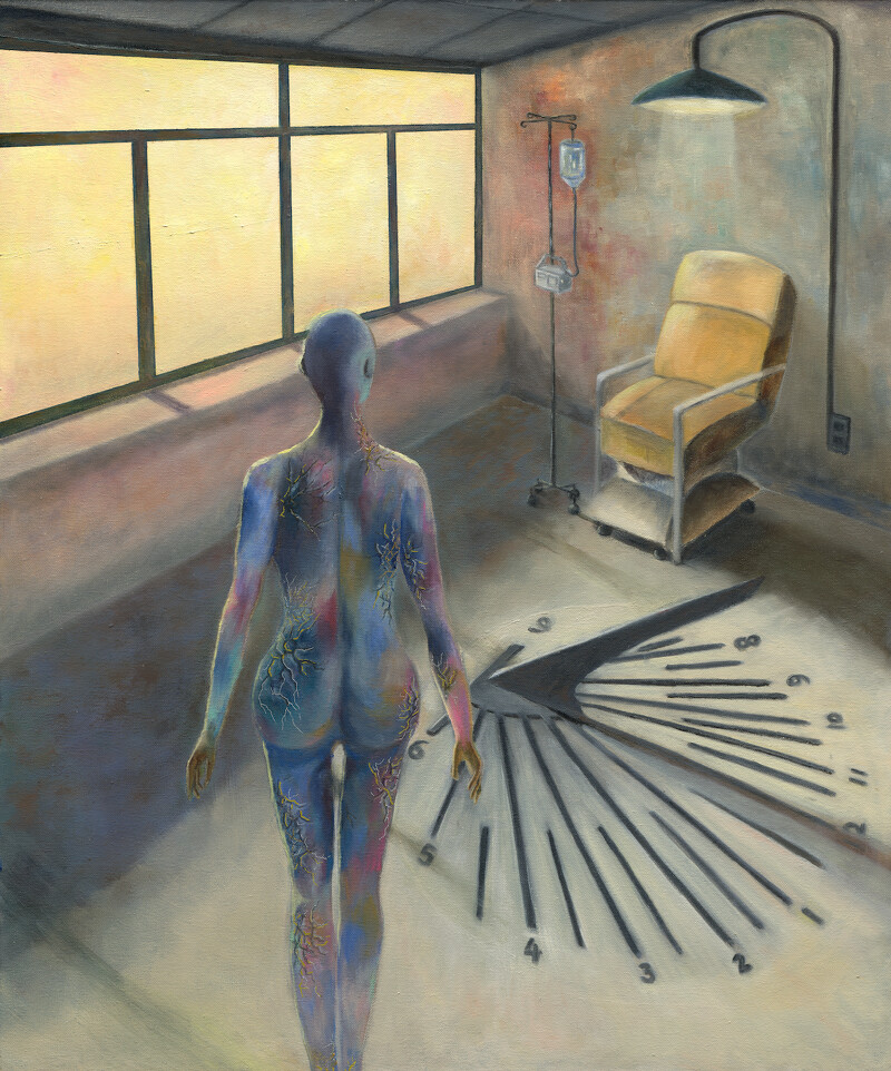 治療之路漫漫,卻似乎還是不夠久。醫(yī)院的個(gè)案管理師建議他找一件事情讓自己專(zhuān)注和沈浸,以免情緒潰堤。他想起小時(shí)候很喜歡畫(huà)畫(huà),因此重拾畫(huà)筆,也將生病過(guò)程記錄在作品中。