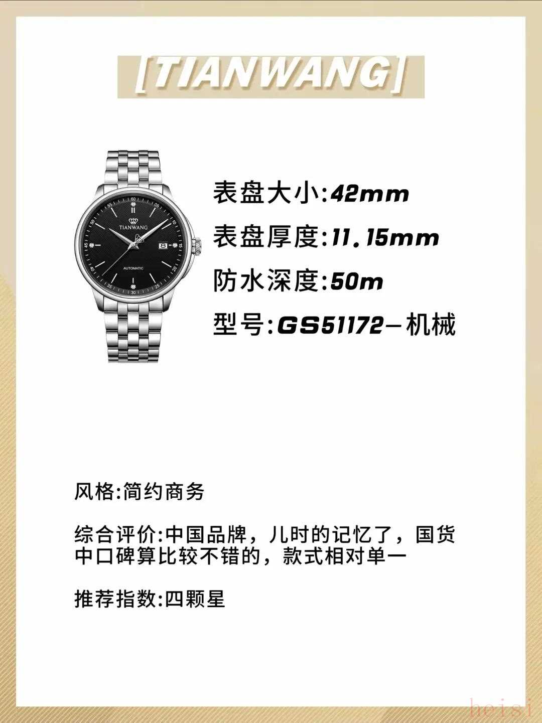 天王GS51172:國產老牌的經典商務款!42mm表盤+鋼帶,簡約大氣,戴去職場超加分,“兒時記憶” 般的口碑,穩(wěn)妥不踩雷~