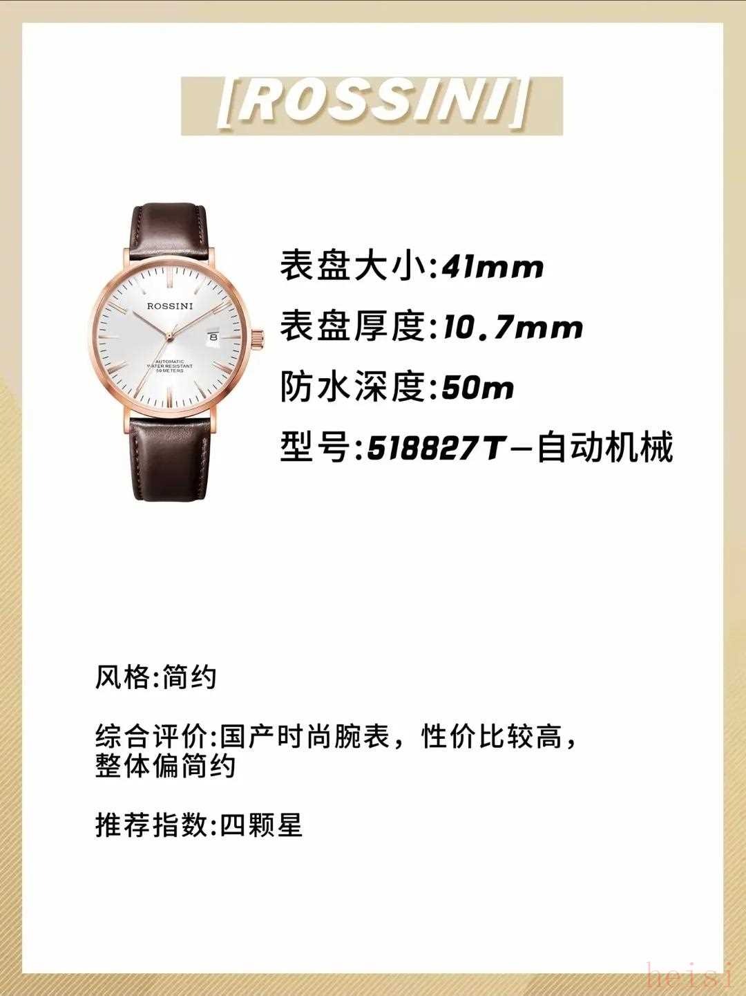 羅西尼518827T:國產時尚代表? 41mm表盤+皮帶,玫瑰金配色顯貴又不浮夸,性價比拉滿,日常通勤、約會都適配~
