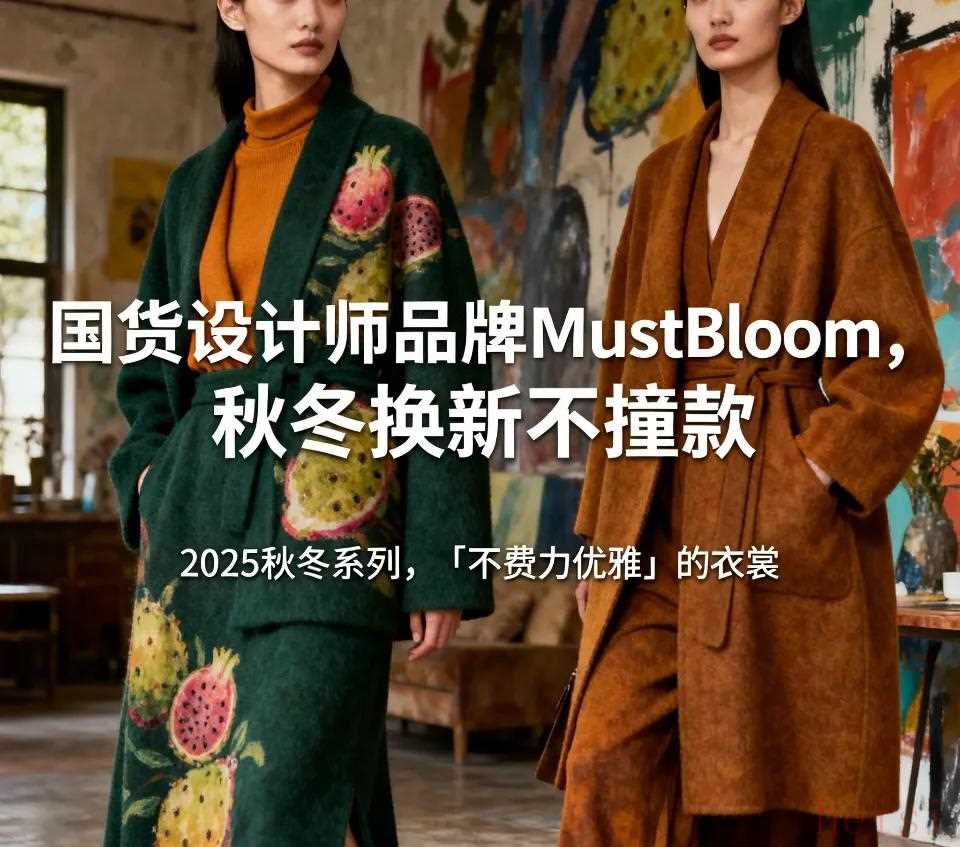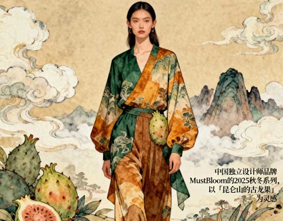 秋冬換新想避開(kāi)撞款?中國(guó)獨(dú)立設(shè)計(jì)師品牌MustBloom的2025秋冬系列太值得沖!本季以「昆侖山的古龍果」為靈感,把上古神話藏進(jìn)了衣料里——墨綠、琥珀色與大地色交織出神秘氛圍,古龍果印花在衣襟間若隱若現(xiàn),仿佛把自然靈韻穿在了身上。