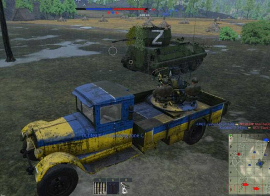 很多烏克蘭人都說俄語,也玩俄語游戲,截圖來自俄羅斯游戲“戰(zhàn)爭雷霆”中玩家構(gòu)建的俄烏雙方對(duì)峙的架空?qǐng)鼍?