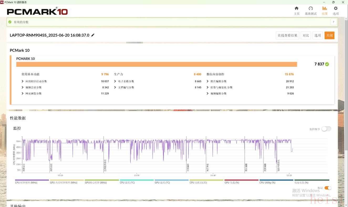 而作為一款全能本,不僅要有出色的游戲性能,也要能勝任日常的辦公需求。在PCMARK10的現(xiàn)代辦公測試中獲得7837的綜合得分,對于日常辦公中的多任務(wù)處理,輕松無壓力,打開大型文檔、PPT等也相當(dāng)流暢。