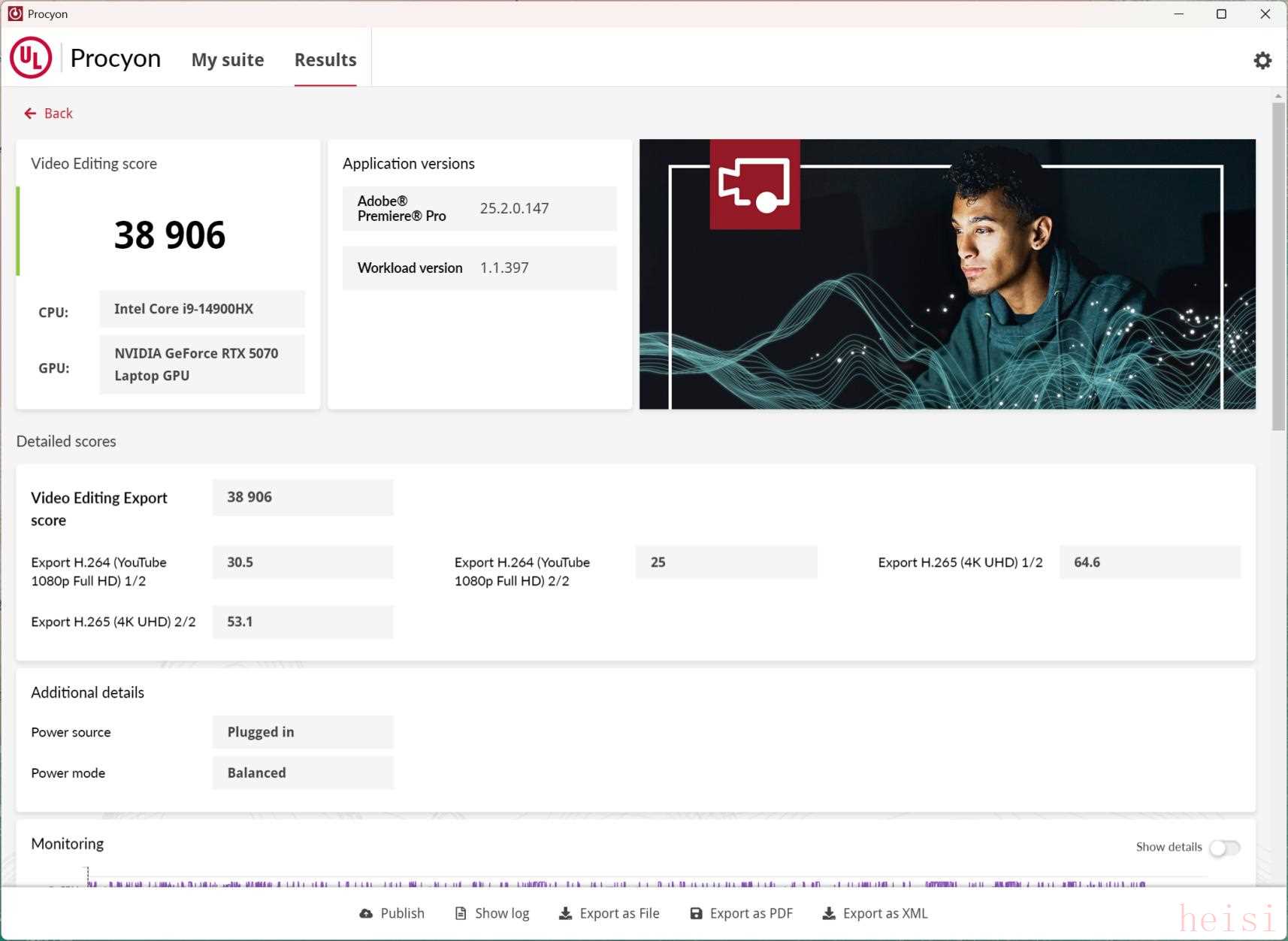 在ULProcyon的視頻處理基準(zhǔn)測試中,獲得38906分。這一項(xiàng)測試主要用到PremierePro進(jìn)行測試,結(jié)果表明在生產(chǎn)力方面iGameM16 Origo能夠輕松應(yīng)對RAW格式照片的處理和4K視頻的剪輯渲染工作,應(yīng)對平面、視頻類創(chuàng)作工作也是毫無壓力。