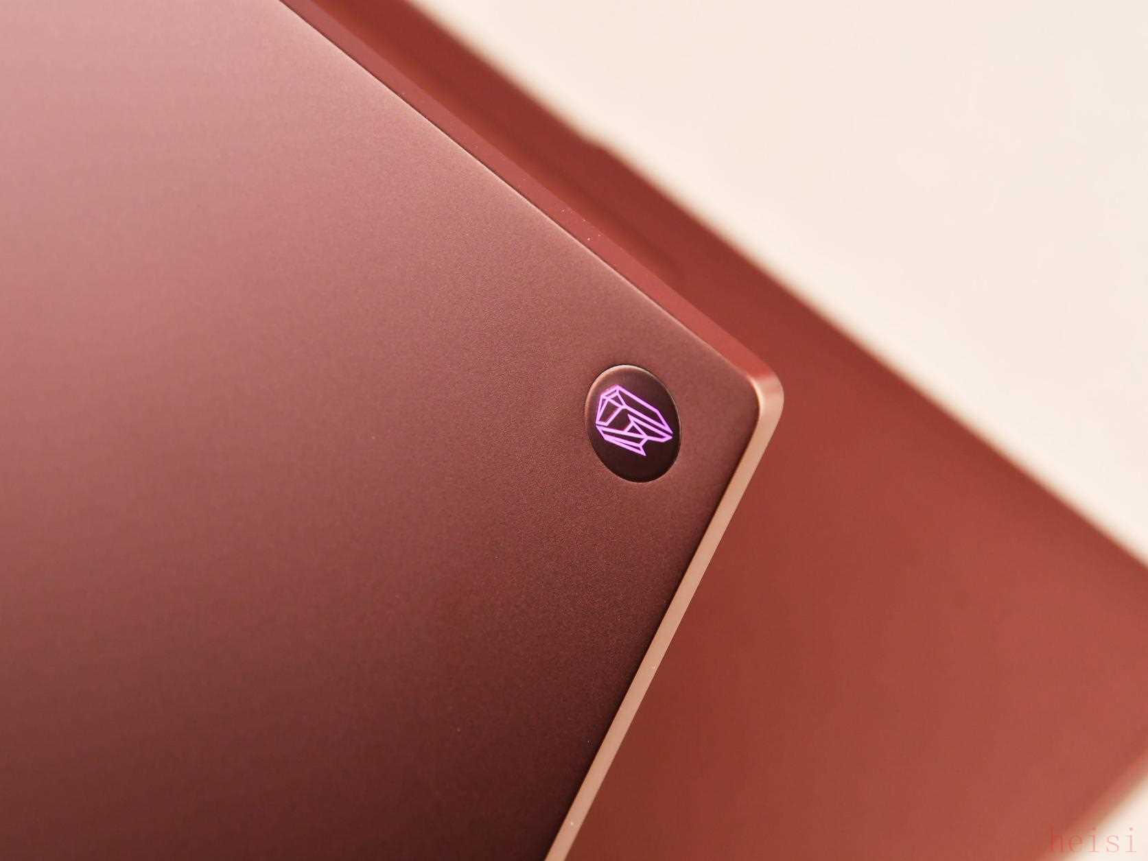 機(jī)身整體采用了特種航空鋁材質(zhì),讓機(jī)身強(qiáng)度更高,也將重量控制在了2.35Kg以內(nèi)。首創(chuàng)的絲綢觸感鈍化層,讓機(jī)身摸上去更加細(xì)膩。雖然設(shè)計(jì)走的是簡約方向,但是小細(xì)節(jié)很多。在機(jī)身兩側(cè)和后側(cè)的出風(fēng)口位置,iGame做了內(nèi)凹的拋光線條設(shè)計(jì),而在B面屏幕三邊也有拋光處理,讓簡約設(shè)計(jì)不單調(diào)。另外iGame還在出風(fēng)口兩角處加入了RGB燈條,增添了一絲電競氛圍。