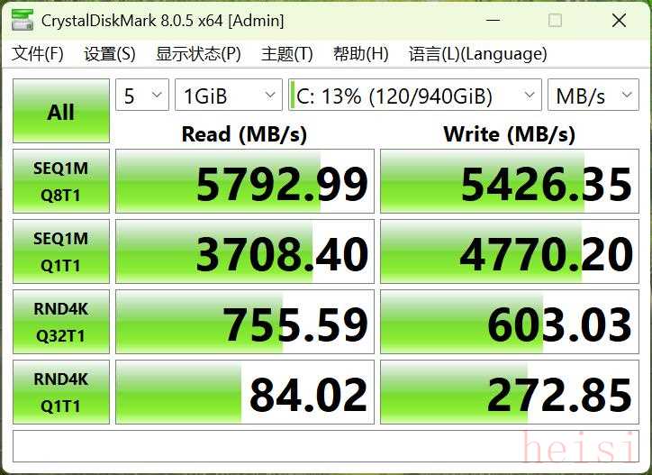 硬盤方面,iGameM16 Origo采用了一塊容量為1TB的PCIe4.0SSD,實(shí)測持續(xù)讀取5792.99MB/s、持續(xù)寫入5426.35MB/s;4K隨機(jī)讀取84.02MB/s、4K隨機(jī)寫入272.85MB/s。表現(xiàn)屬于旗艦級PCIe4.0SSD的水平,而且4K能力相當(dāng)亮眼,有利于系統(tǒng)響應(yīng)速度。此外內(nèi)部還預(yù)留一個(gè)M.2硬盤位,支持PCIe4.0,方便用戶擴(kuò)容。