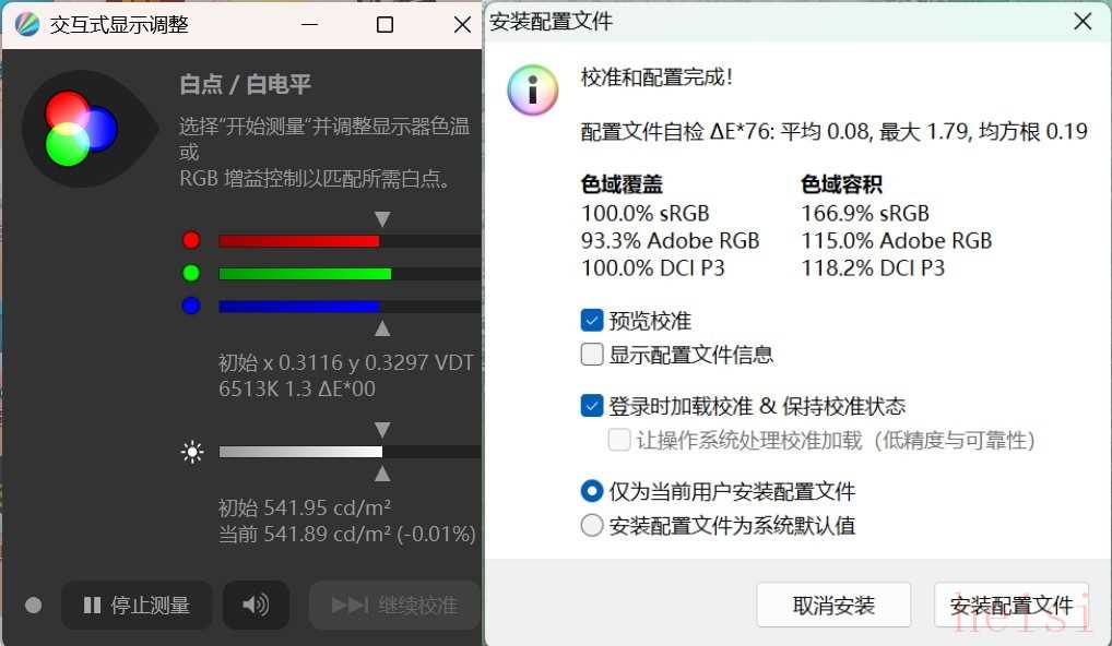 通過我們對屏幕的亮度、色域進(jìn)行了實(shí)測,可以看到在開啟HDR模式后屏幕的峰值亮度可以達(dá)到541nit,超過了官方給出的數(shù)據(jù)。同時(shí)色域覆蓋達(dá)到100%sRGB、93.3%AdobeRGB、100%DCI-P3,色域容積覆蓋達(dá)到166%sRGB、115%AdobeRGB、118.2%DCI-P3,均符合官方宣稱的影視級高色域。
