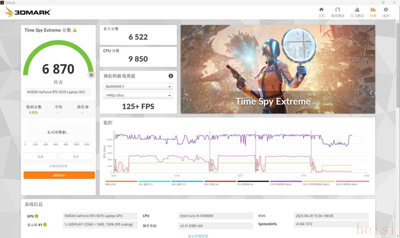 在衡量顯卡4K、DX12理論性能的TimeSpy Extreme測試中得分為6870。