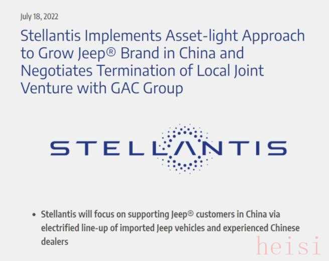 7月18號,PSA跟FCA合并而來的Stellantis集團宣布,打算要終止跟廣汽集團的本地合資企業(yè),也即是廣汽菲克。目前廣汽菲克旗下有且僅有JEEP一個品牌,而Stellantis集團似乎又留戀著什么,聲稱將在中國保留JEEP品牌,但是以進口車方式銷售。好一招退了,又不完全退。
