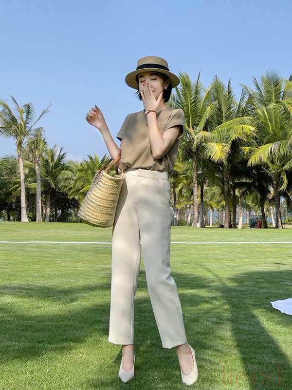 真正會穿搭的女性,從來不會用昂貴的配飾或者是名牌服裝堆砌在身上,而是懂得款式的重要性。畢竟,好品味在于著裝是否得體與舒適,而不在于價位高低。簡單的T恤配上九分褲,這樣的造型看似毫無新意,殊不知就勝在了「簡單」二字上。