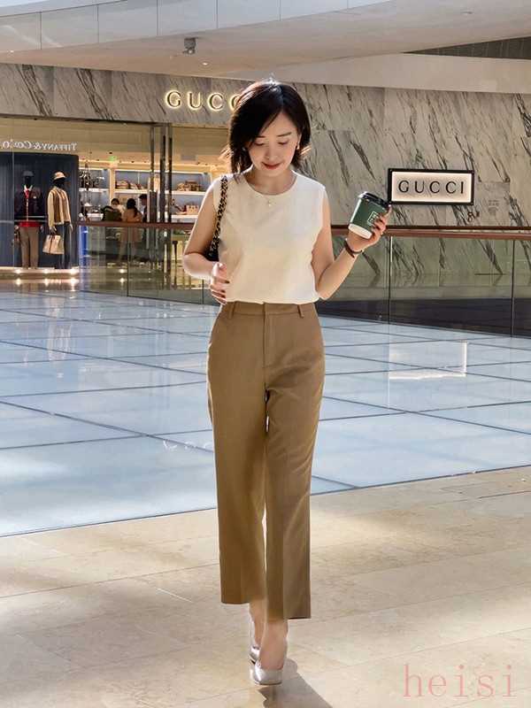 成熟的女人追求時尚與舒適,在搭配之余也盡可能以能展現(xiàn)出舒適度的服裝為主。無袖衫+九分褲,顯露出纖細藕臂、白皙頸部,讓上半身的束縛感降到最低。這樣的簡單服裝,將慵懶、隨性與舒適完美顯露,很適合夏季穿著,透氣性還強,不用擔心炎熱的天氣導致自身散熱慢、沉悶感嚴重的問題啦。再配上利落颯爽的九分褲,無形中提高了個人的形象,將多余的隨性感沖散,使其呈現(xiàn)出優(yōu)雅又知性的氛圍感。
