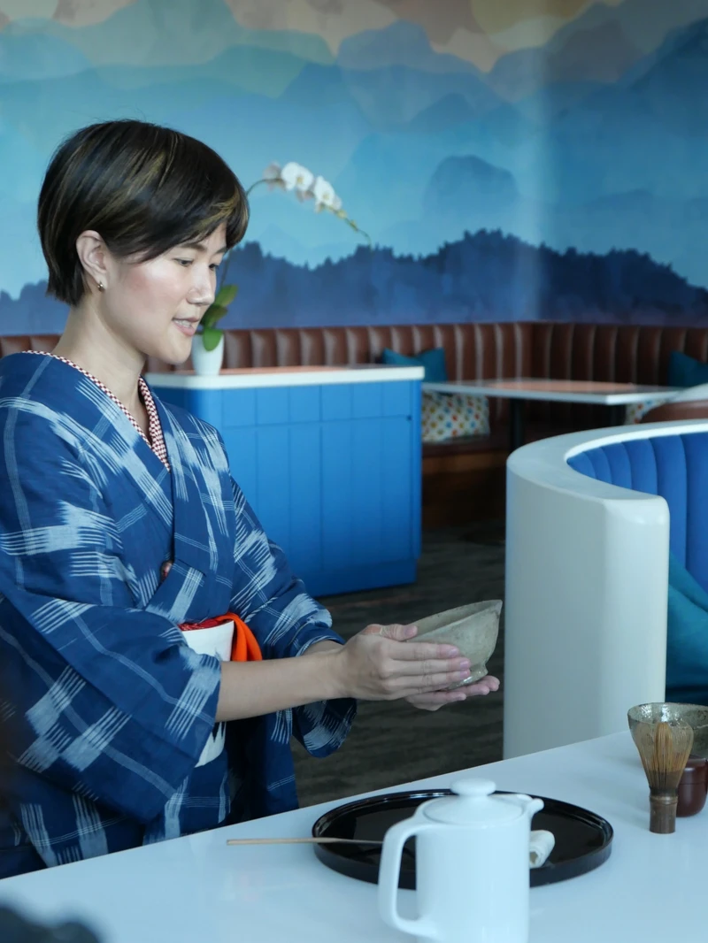 從日本傳統(tǒng)和菓子延伸而來,Chef Matteo 以自製糯米皮包裹綿密細滑的臺灣白豆沙,口感柔軟、香氣淡雅。不同于傳統(tǒng)甜味的搭配,選擇加入這次臺灣行他相當驚艷的,讓果香的清新與豆沙的甜潤形成平衡。咬下一口,蓮霧的脆爽與糯米皮的彈性交織,為整道甜點增添一股乾凈又自然的氣息,讓經(jīng)典日本傳統(tǒng)甜點多了一份臺灣味。搭配上 Chef Matteo 的夫人 Asari 親自製作的日式抹茶,微苦的茶湯中和了甜點的柔和甜味,為餐會寫下舒心的句點。