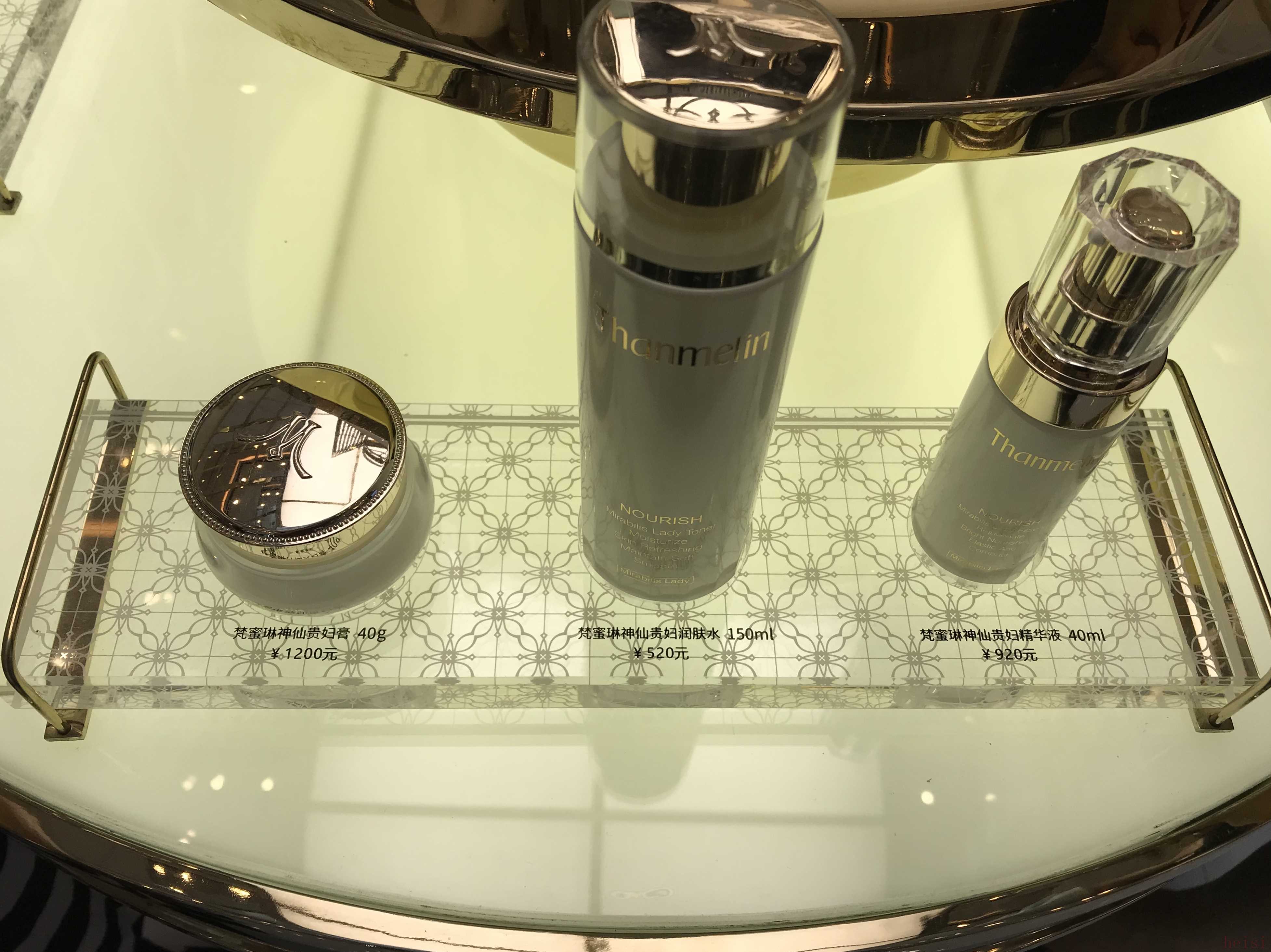 在梵蜜琳之前,上一個積極謀求“上位”微商品牌是麥吉麗。兩者無論是從產(chǎn)品、包裝和門店裝潢以及營銷手法都都頗為相似,比如,麥吉麗2800元一套的素顏三部曲和梵蜜琳神仙三件套仿佛孿生姐妹,2017年起它便在《演員的品格》《延禧攻略》《中國新歌聲》等之中都有“揮金如土”般的植入。除此之外,有著類似套路的微商品牌還包括很早便開始在央視進行植入的思埠,以及在高鐵上打廣告的蜜拓蜜。