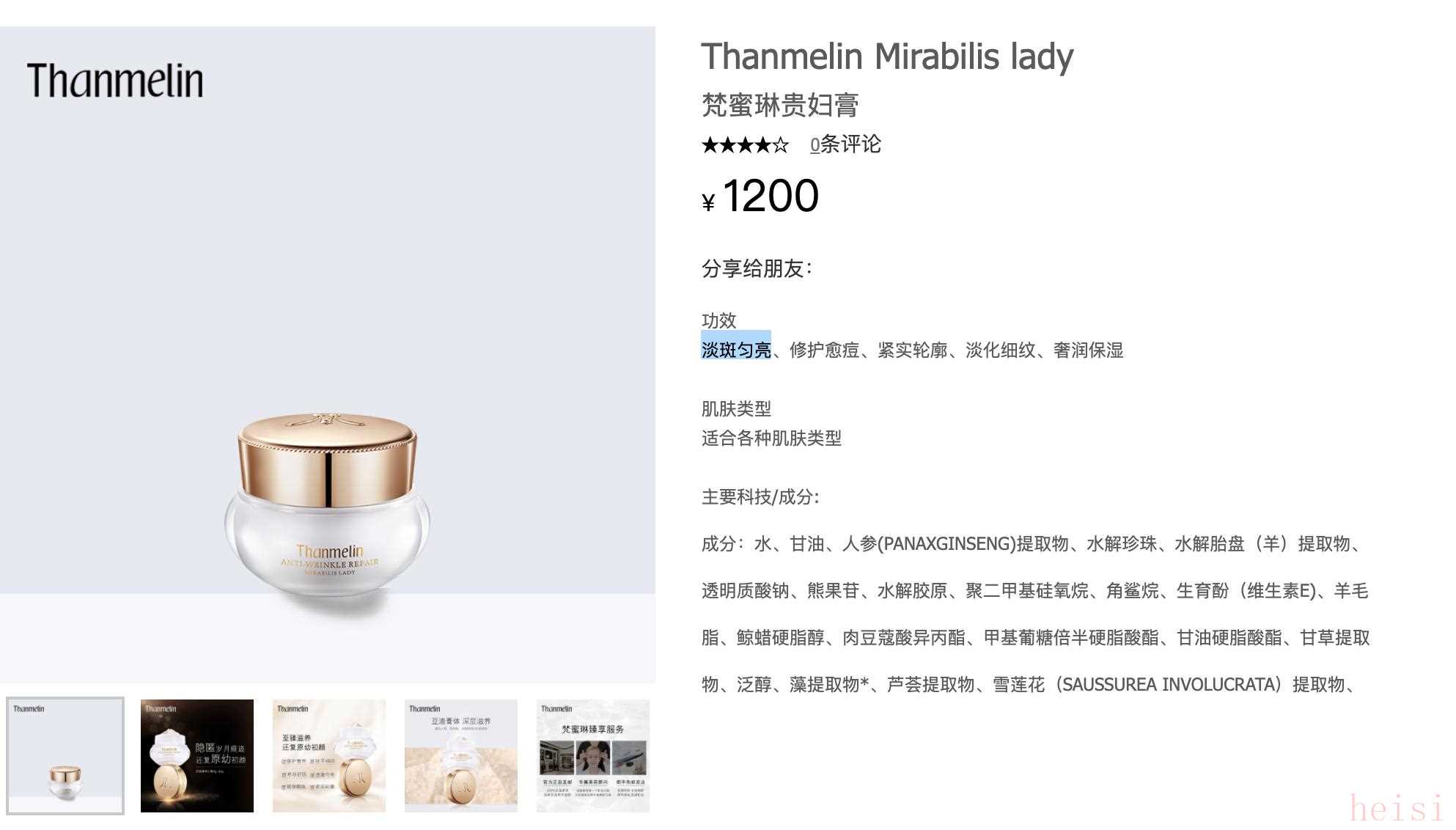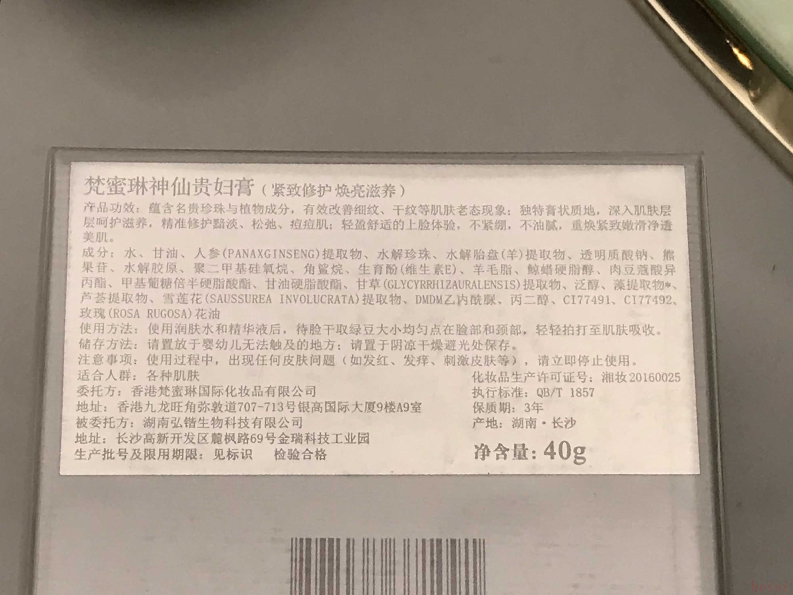 從梵蜜琳在國家藥品監(jiān)督管理局的化妝品備案的成分信息來看,神仙貴婦膏的主要成分為水、甘油、人參提取物、水解珍珠、水解胎盤(羊)提取物、角鯊?fù)椤?/p>