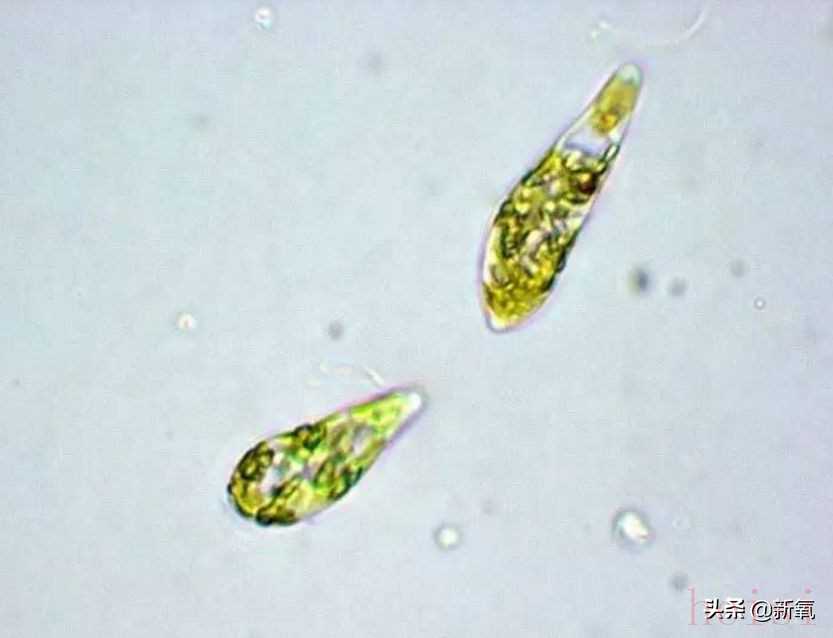裸藻,又叫綠蟲藻,在顯微鏡下長(zhǎng)得跟草履蟲有點(diǎn)像,只不過草履蟲是動(dòng)物,它是介于動(dòng)物和植物之間的單細(xì)胞生物。