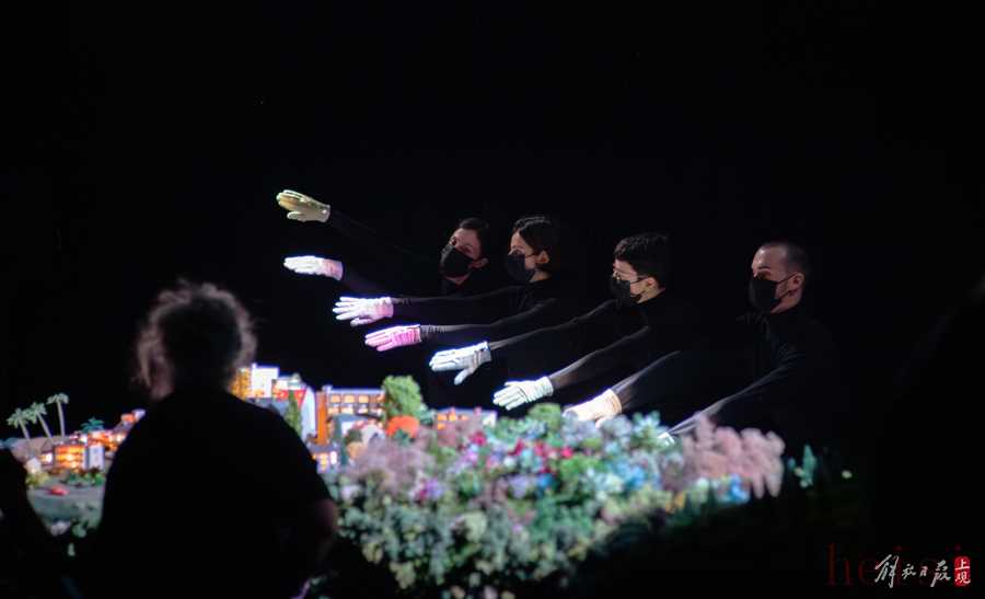 以“飛馬行空”為名,這場具有“時(shí)空限定”屬性的展覽,以7幕鏡頭現(xiàn)場拍攝、實(shí)時(shí)投屛的形式,融合微縮景觀,手部表演,肢體舞蹈等藝術(shù)表達(dá)手法,講述了一個(gè)關(guān)于小馬探索奇妙未知世界的童話故事。