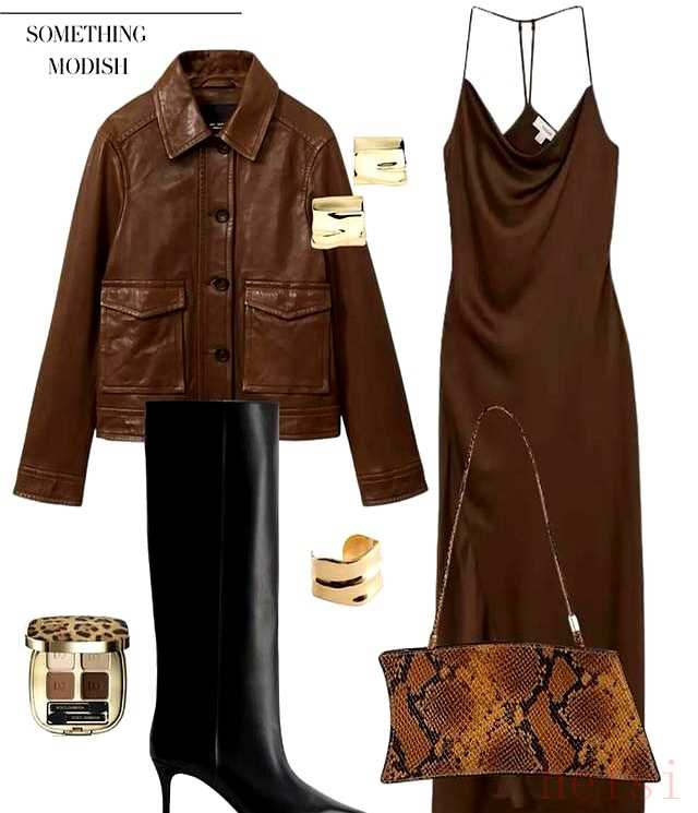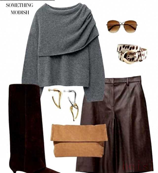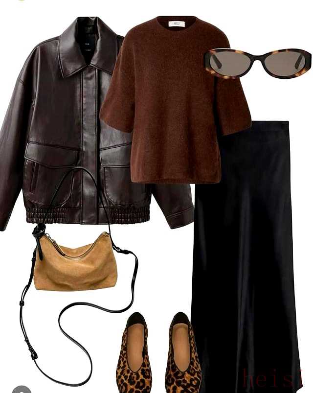 6. "棕色皮質(zhì)半身裙":棕色皮質(zhì)半身裙既有秋天的溫暖感,又帶有一定的酷感,搭配一件米色毛衣,既有層次感又不失柔美。