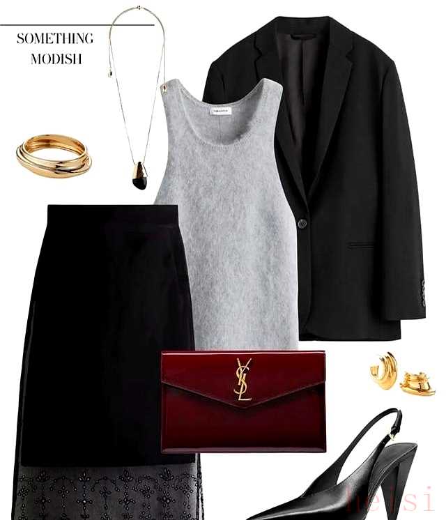 5. "灰色格紋半身裙":灰色格紋是秋天的熱門(mén)元素,半身裙搭配一件黑色針織衫,既有時(shí)尚感又不失優(yōu)雅。