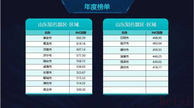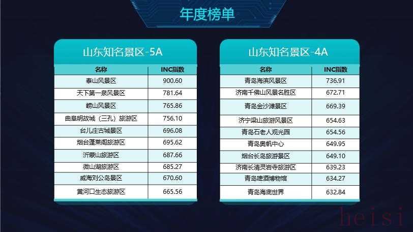 通過(guò)榜單可以看出,“好客山東”“好品山東”不負(fù)眾望,分別位居公共品牌前兩名;泰安、青島、濟(jì)南三地的5A、4A景區(qū)INC指數(shù)穩(wěn)居前三。