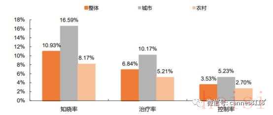 下圖:中國成人血脂異常知曉率、治療率和控制率低