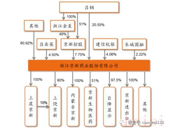 目前公司控股股東和實際控制人為呂鋼先生,直接和間接持有公司 28.3%的股份,旗下主要子公司包括上虞京新、上饒京新、內(nèi)蒙古京新、巨烽顯示等。