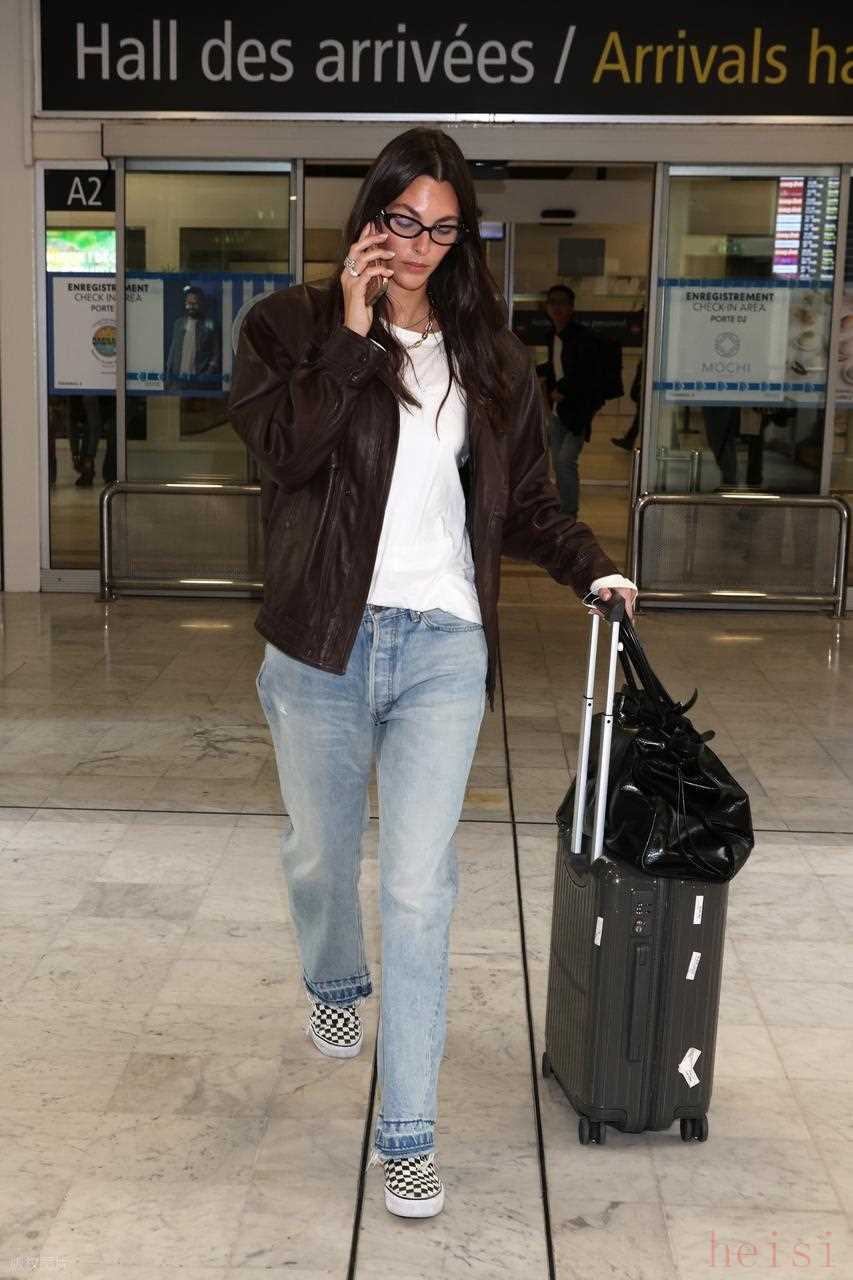 海莉打破了皮衣 “只有黑色好看” 的認(rèn)知,棕色皮衣自帶溫柔濾鏡,搭配白色 T 恤和牛仔褲,休閑又顯氣質(zhì);棕色系比黑色更柔和,適合喜歡溫柔風(fēng)格的女生,秋冬穿還能營造出 “暖乎乎” 的氛圍感,搭配圍巾、貝雷帽更顯精致。