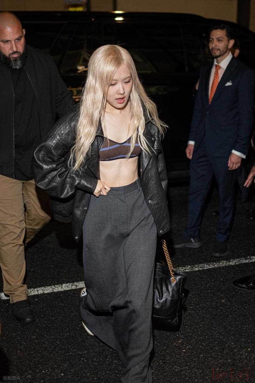 5. BLACKPINK Rosé:黑色皮衣 + 運(yùn)動(dòng)內(nèi)衣 + 灰色長裙,前衛(wèi)個(gè)性風(fēng)吸睛