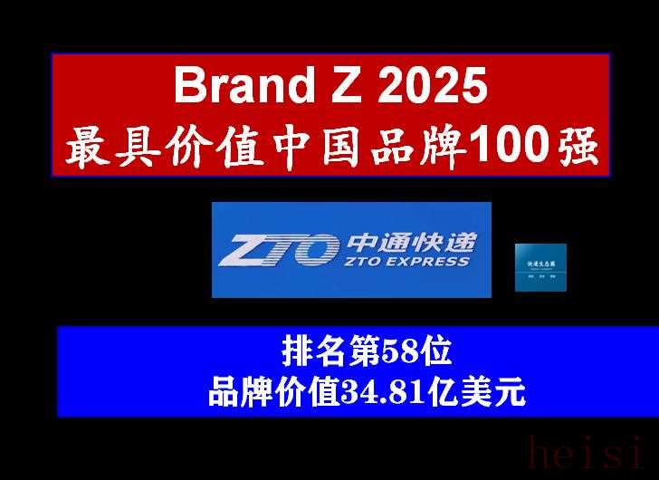 "中通快遞 (ZTO Express)" 位列第 "58" 名。