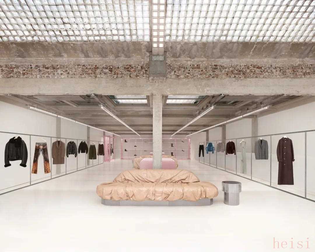 室內(nèi)空間延續(xù)了 Acne Studios 一貫的冷靜與先鋒氣質(zhì)。設(shè)計重點在于“新舊并置”,新元素清晰可辨,卻不破壞整體的歷史氛圍。