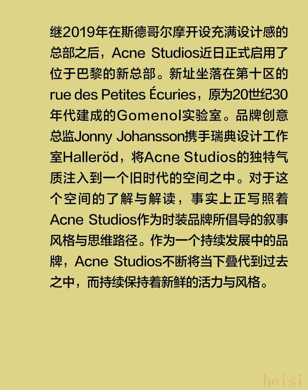 “我們的重點是尊重這棟建筑的歷史,同時注入一種新的現(xiàn)代能量?!盝ohansson對于新辦公室的這句解讀,不正是Acne Studios一貫做派的總結(jié)?不斷在過去的基礎(chǔ)上,加入新的東西,或許是和諧的,或許是突兀的,當它們在一起,即表達出了一個人或者一個品牌所具有的豐滿靈魂。