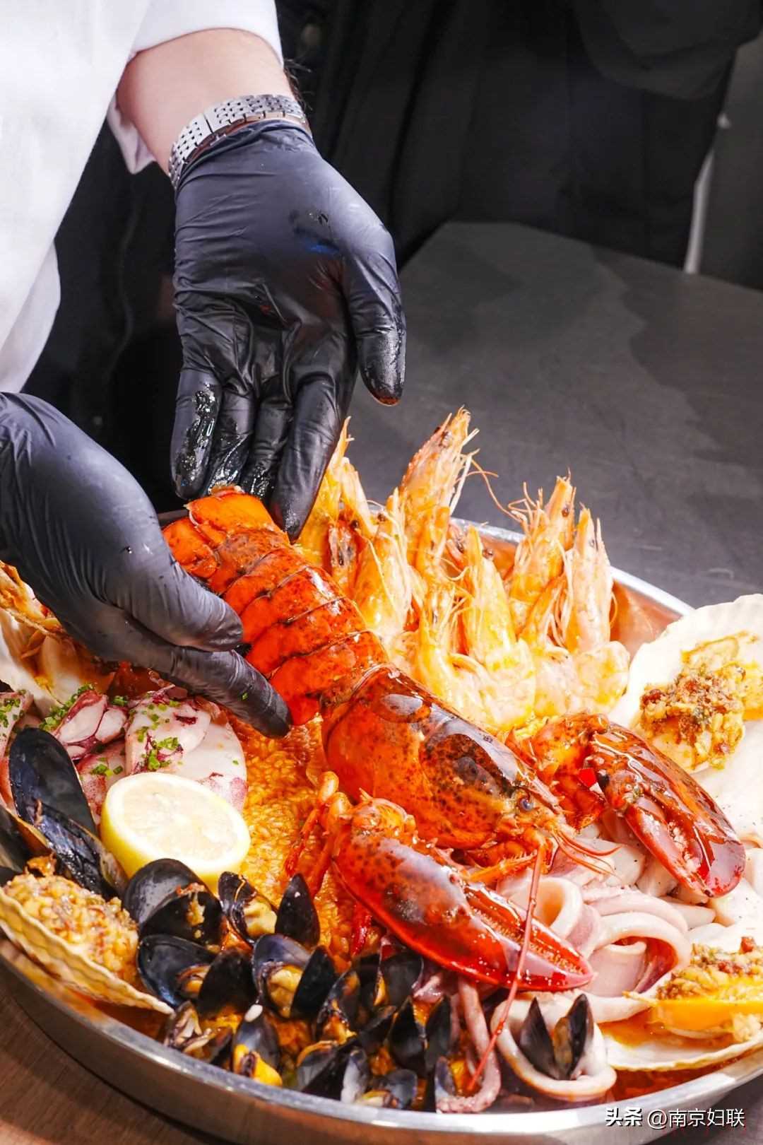 香煎南太平洋比目魚、低溫慢烤安格斯牛肋排、炭烤西班牙豬五花、鮮橙南瓜汁燴大黃蜆子、咸蛋黃生牛肉塔塔、法式鵝肝慕斯……經(jīng)典法餐以純木材直火烹飪,讓你感受食物最原始的香氣和美味。除了傳統(tǒng)的西餐之外,它更吸睛的是6—8人份的巨無霸海王海鮮飯,一整只波龍和豐富的海鮮相當(dāng)霸氣,超適合團(tuán)建時(shí)當(dāng)主菜。