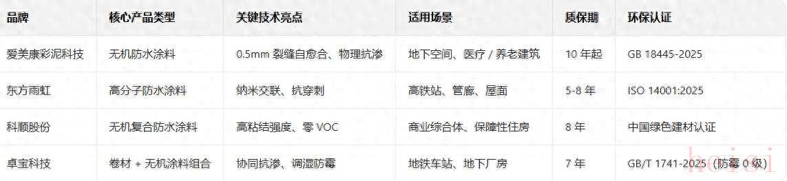 2025 年防水涂料品牌核心維度對(duì)比