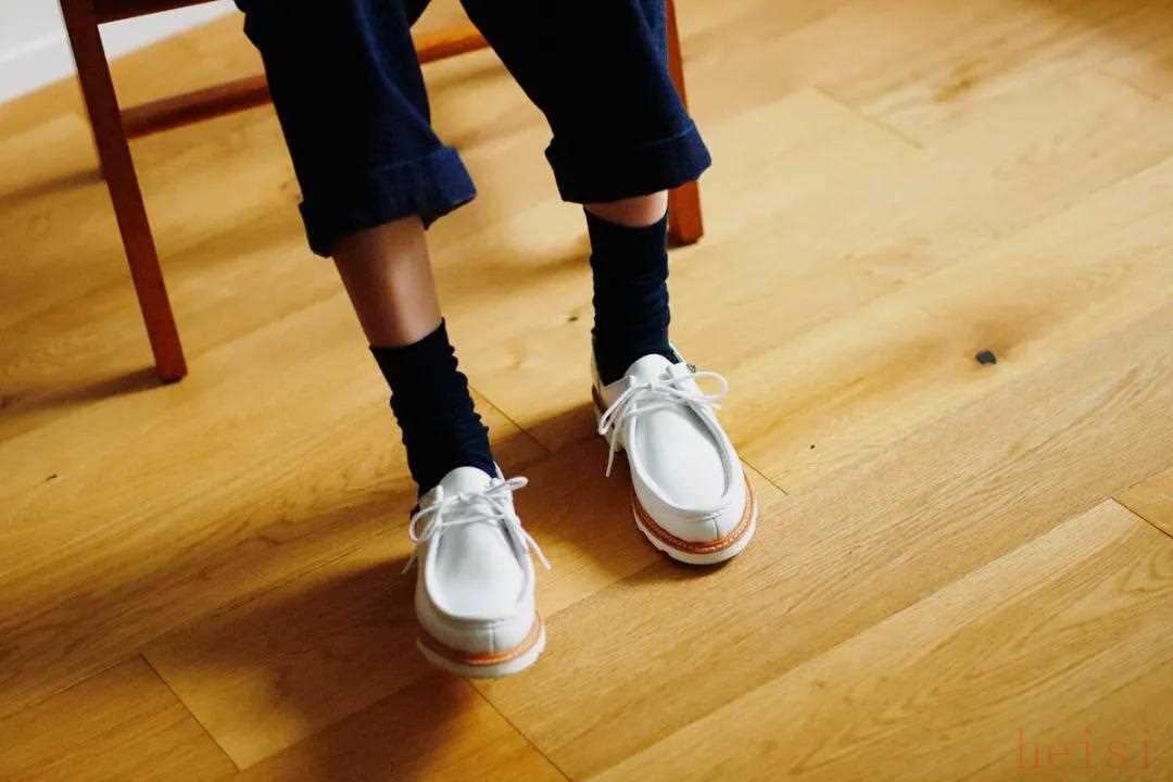 除了搭配的風(fēng)格之外,在細(xì)節(jié)上,白色皮鞋需要注意一下襪子的選擇。
