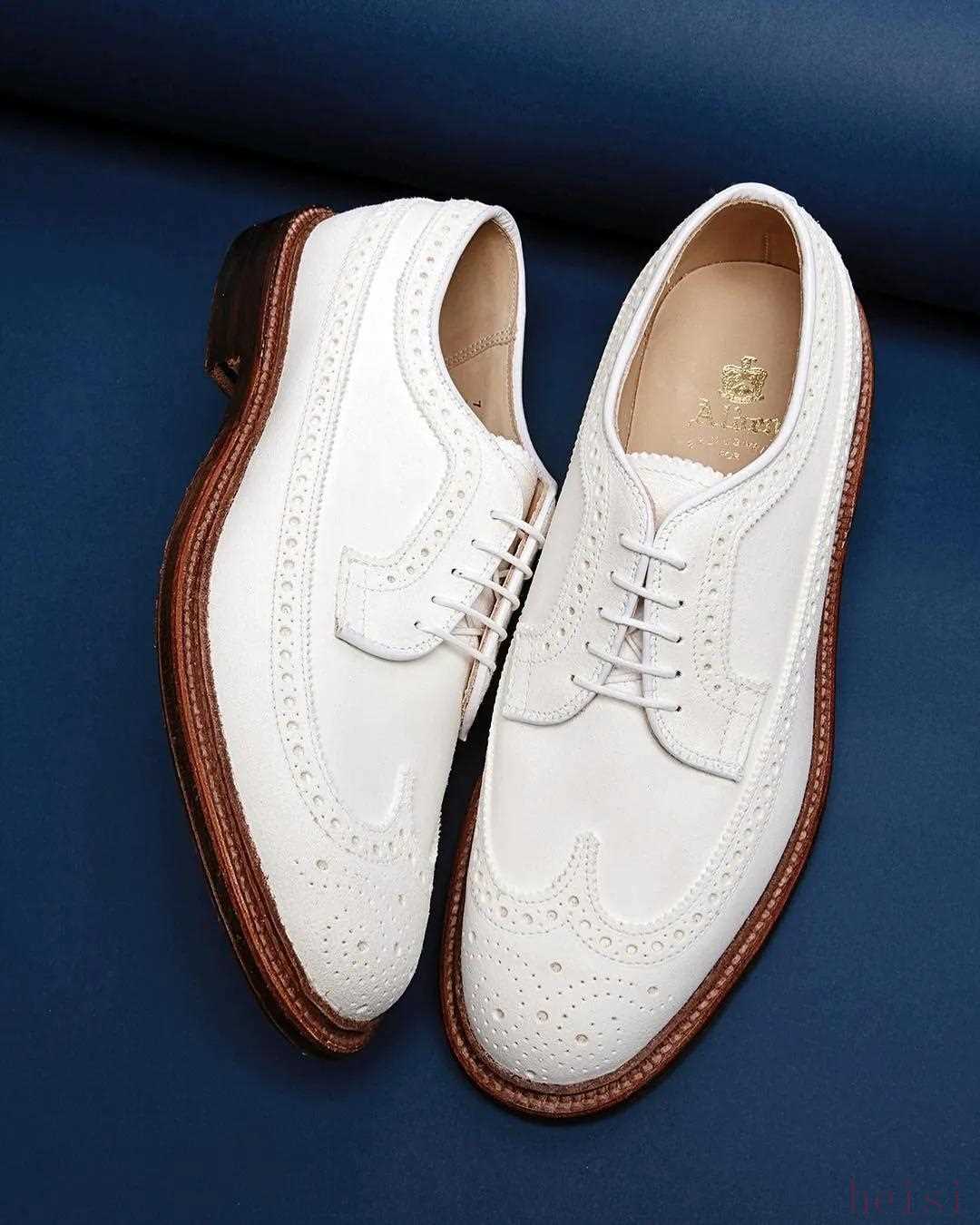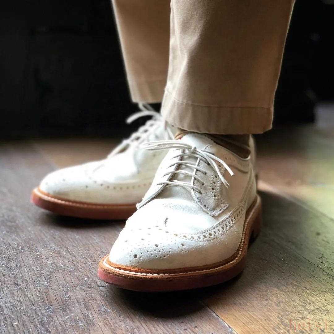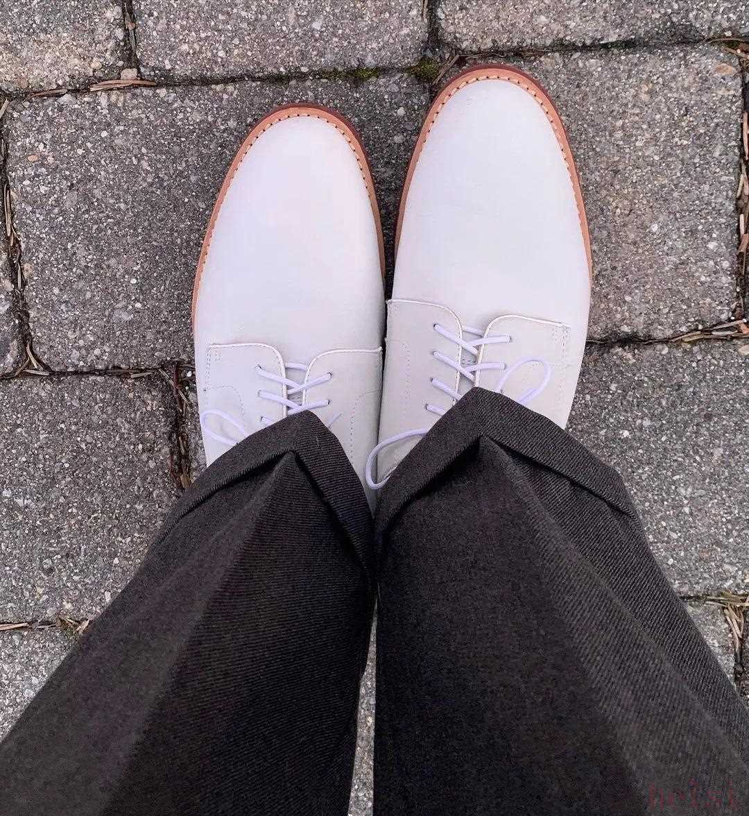 沒錯(cuò),白色確實(shí)不是皮鞋的常見色,這里要拋開皮質(zhì)小白鞋,主要說的是皮質(zhì)紳鞋。