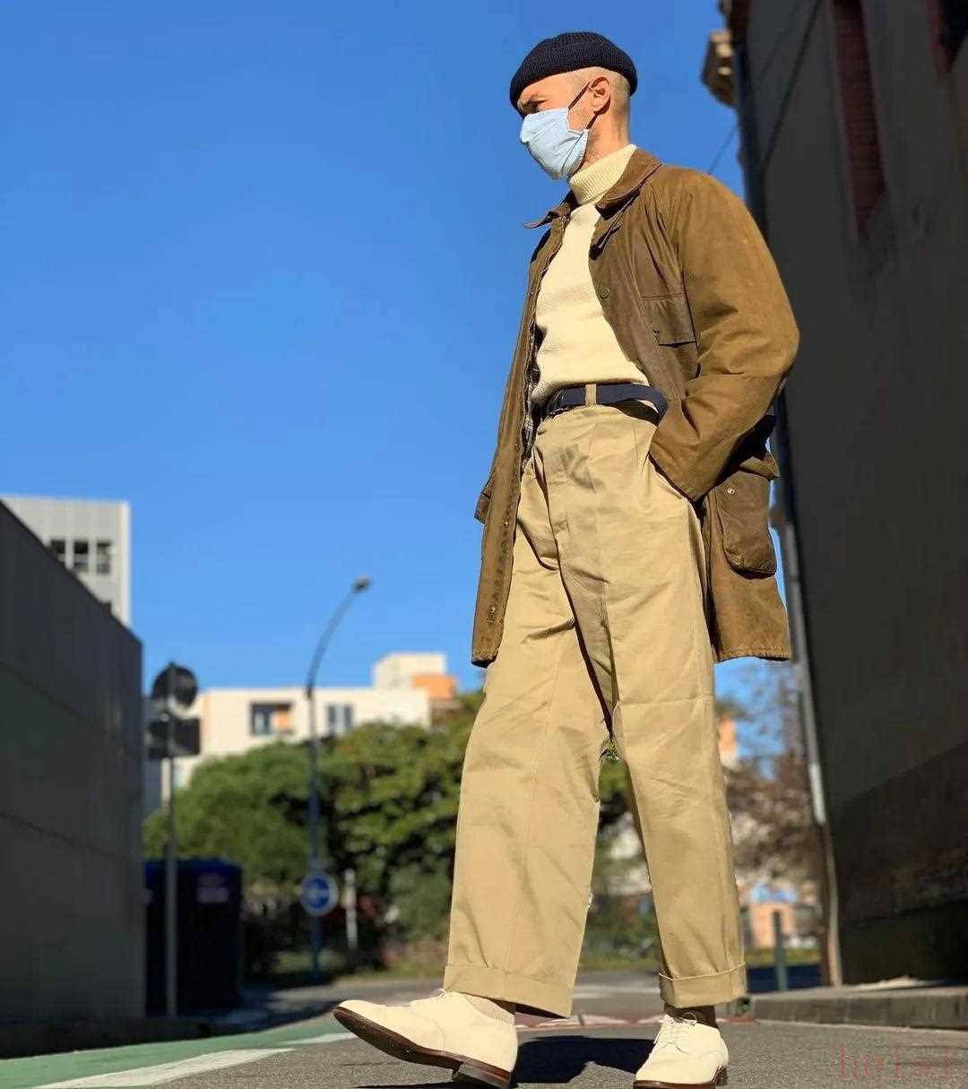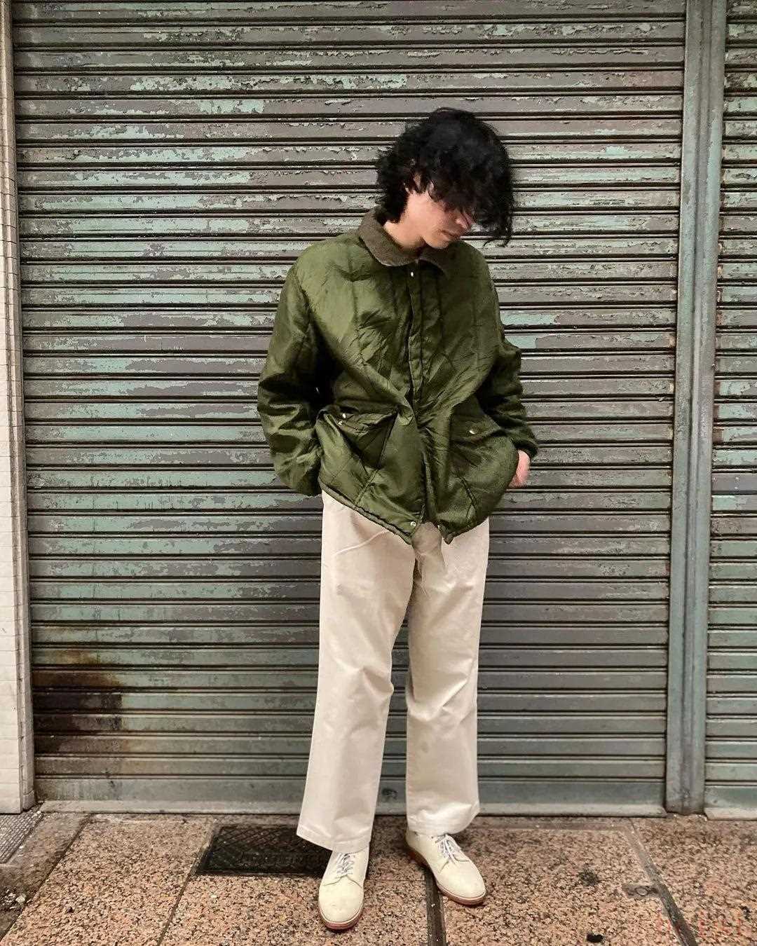 坦白講,不夠深沉的白皮鞋會(huì)降低軍工裝的硬朗程度,可隨之而來的是輕快的表現(xiàn),讓整體風(fēng)格擺脫了厚重的粗獷感,隨性清新,特別是卡其色、軍綠色等傳統(tǒng)的軍工裝配色,在白皮鞋的加持下,它們會(huì)變得更加通透。