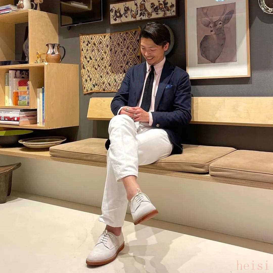 正式性更足的套裝與 White Bucks 在內(nèi)的白皮鞋都不是那么自在,而那種 半正式的休閑風(fēng) 才是更恰當(dāng)?shù)摹?/span>