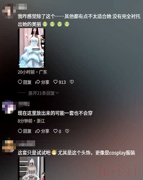 "總結(jié)一下:" 這個(gè)說法表明徐藝洋試穿市面上的一些婚紗(可能是傳統(tǒng)西式或普通定制)沒有得到很好的評(píng)價(jià),被認(rèn)為有些俗氣或過時(shí)。然而,當(dāng)她選擇更具個(gè)性化、定