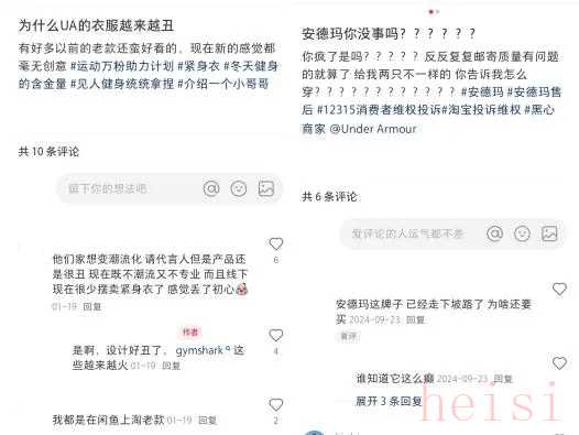 (小紅書網(wǎng)友對安德瑪產(chǎn)品不滿的帖子)