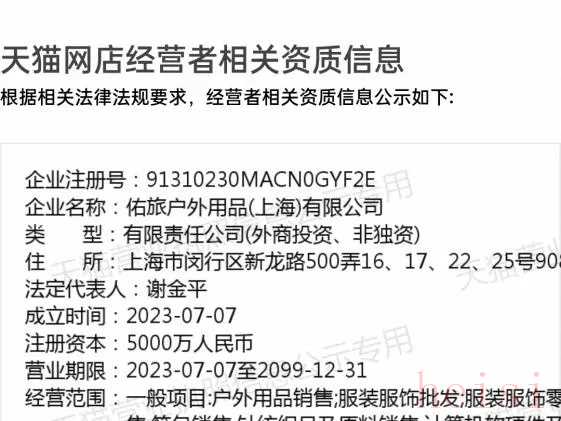 (安德瑪戶外淘寶旗艦店經(jīng)營者信息)