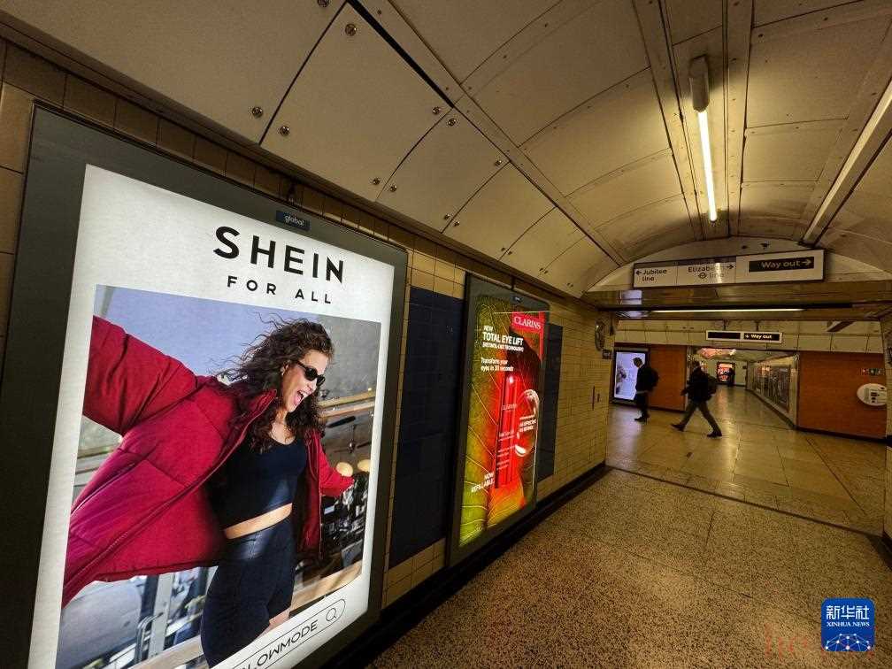 這張9月17日拍攝的資料照片顯示的是英國(guó)倫敦一處地鐵站內(nèi)的中國(guó)時(shí)尚品牌SHEIN的廣告。 新華社記者 高文成 攝