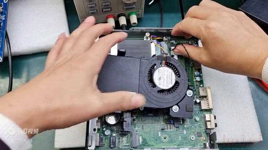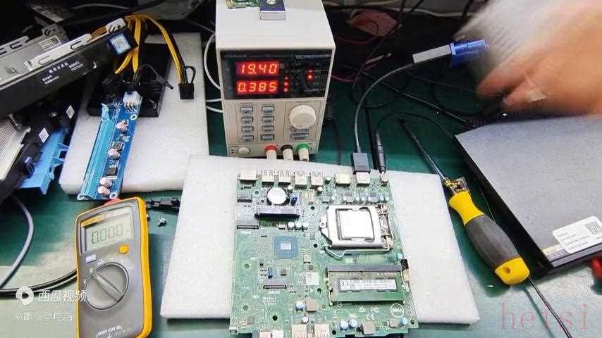 16. 再拔掉電源裝入 cpu 試一下,這個主板比較簡單,也就是公共點(diǎn)沒有產(chǎn)生導(dǎo)致不開機(jī)。插入 hdmi 顯示器,放一個三十塊,開機(jī)看一下能不能顯示,誰看到可以顯示,這個地方可以看到,這個是三零五零的。