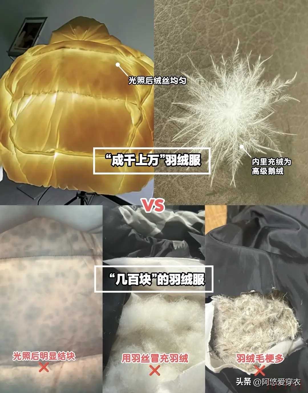 光看標(biāo)簽還不夠,畢竟好多商家也學(xué)聰明了,會在標(biāo)簽上面作假,雖然標(biāo)簽上面標(biāo)注的信息都對得上,但羽絨服里面用的材質(zhì)什么的可能都是妥妥的廉價(jià)羽絲以及羽絨毛梗。