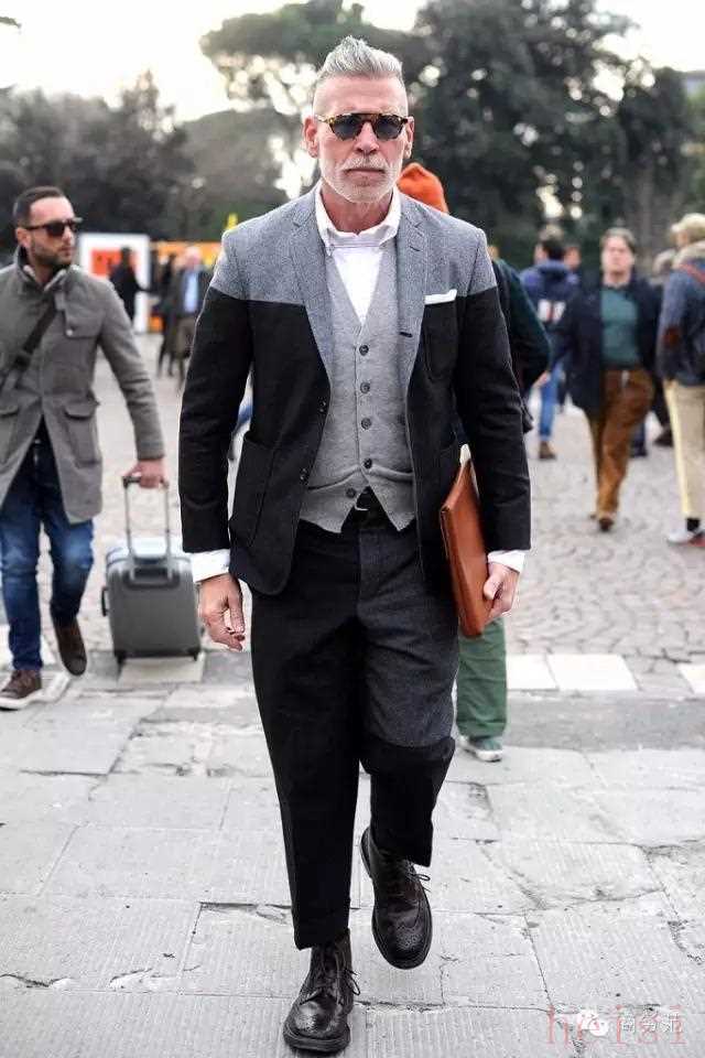 擔(dān)心拿手包會(huì)的范友們,看一下Nick Wooster大叔... 手包在他身上不會(huì)是累贅,更是一個(gè)加分項(xiàng)。